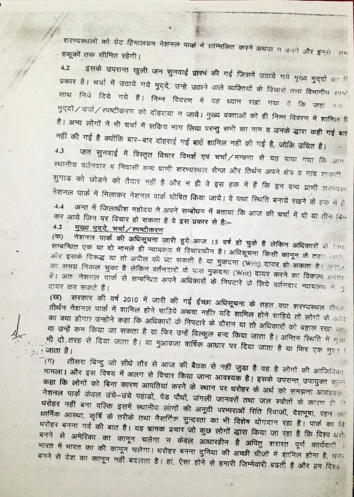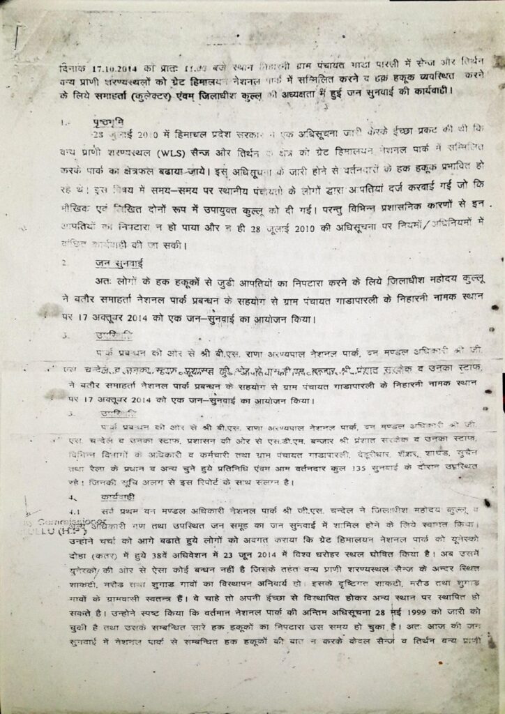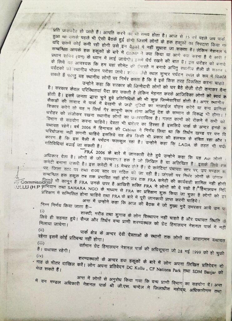 Safeguarding community rights during formation of GHNP and World Heritage Site in and around GHNPCA