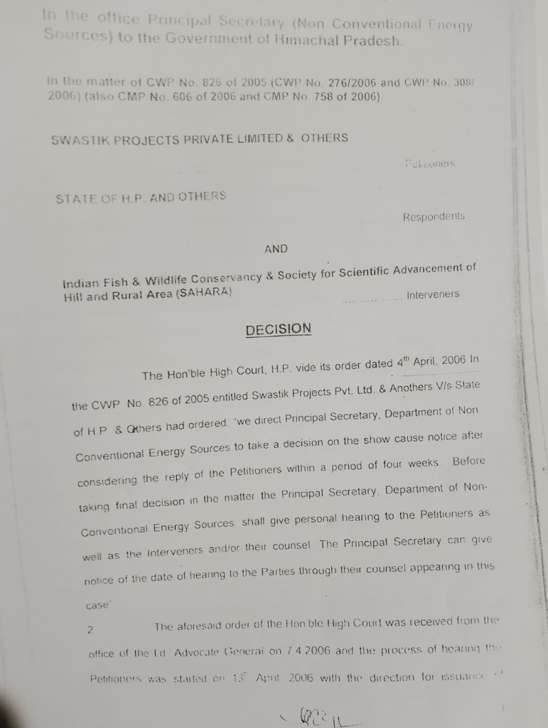 SAHARA played key role, including becoming a party in Himachal High Court for the issue concerning restriction of micro hydel projects in sacred Tirthan river
